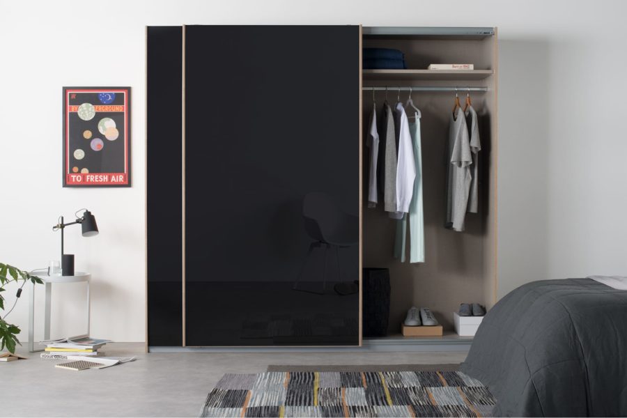 Dressing à 2 portes coulissantes, 225 cm, cadre en MDF et portes miroir