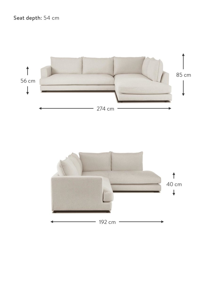 • Dimensions : 2.74 cm de long /une assise d’angle rallongée à 1.92 cm /profondeur 80cm/ Hauteur 40cm