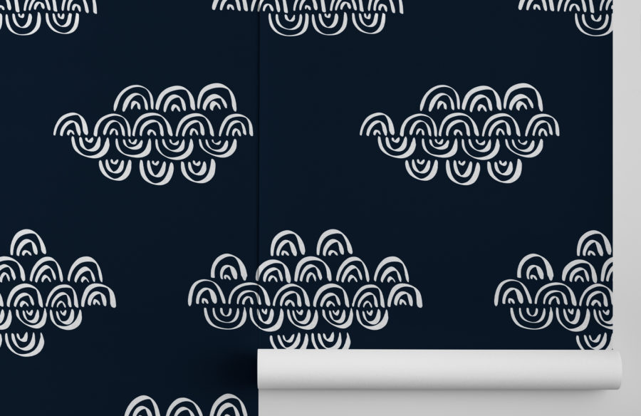Navy Blue Japanese Clouds Repeat Pattern Wallpaper
