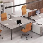 Longueur du premier bureau + module central + longueur du second bureau x profondeur x hauteur :